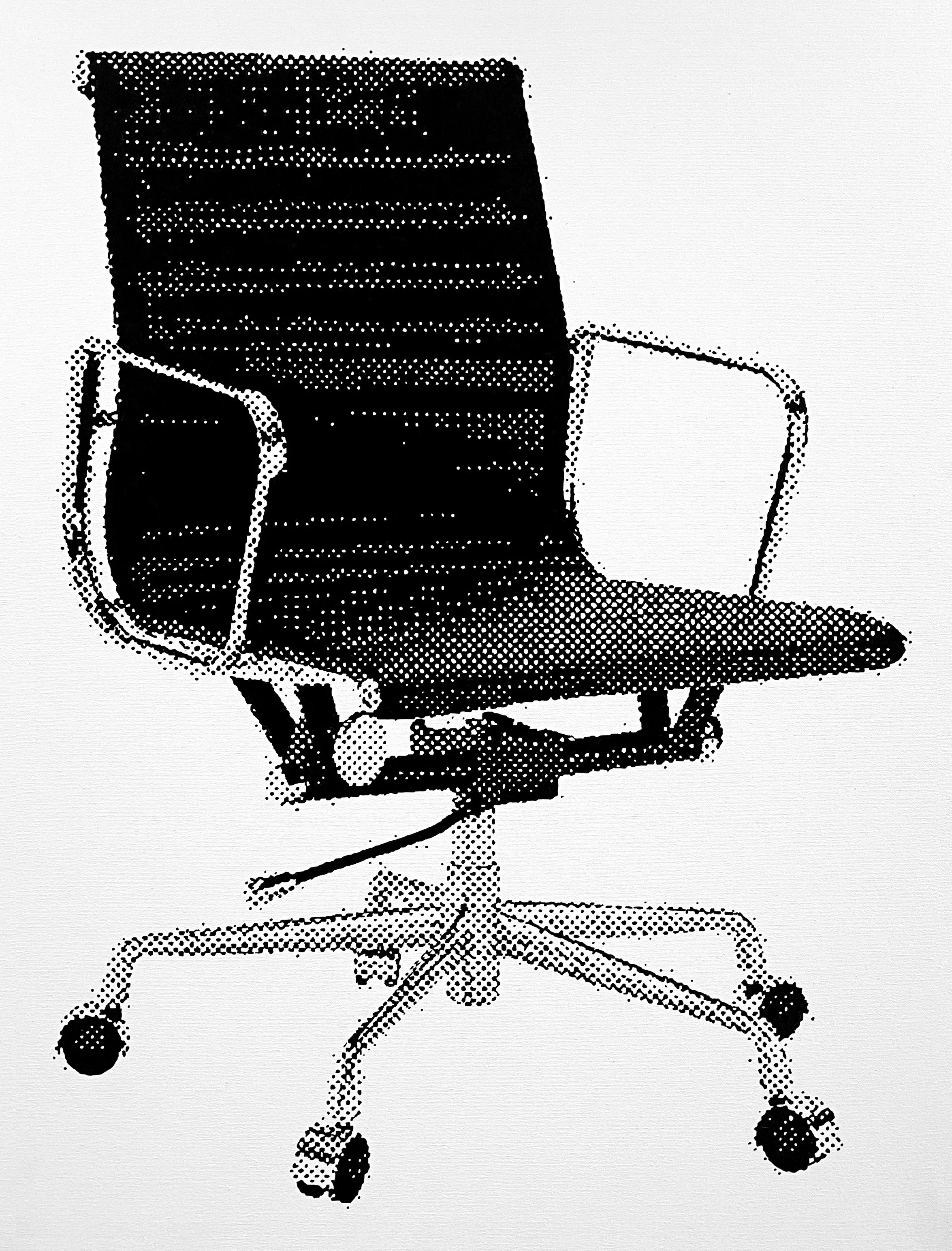 Untitled (chair)2026 hand painted halftoneacrylic paint on canvas28.5” x 21.75”© 2026 Howard Steenwyk